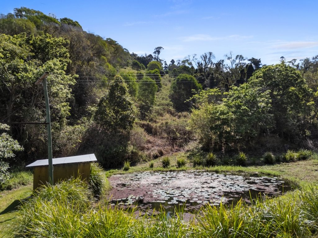 Infrastructure here is impressive. A 18x9m shed with three-phase power plus two adjoining rooms, a toilet and shower, and a cool room, making it suitable for a wide range of uses. Water is secure with two house tanks, a bore that pumps to a header tank for gravity feeding, and two dams, one spring-fed with a pump. The property is well set up for grazing with electric fencing, quality steel cattle yards, seven water troughs plus one in the yards, and a large dog kennel. For those interested in growing, established fruit trees include mulberry, bananas, lemon, mango, custard apples, macadamia, mandarine and more, with plenty of space to expand further.