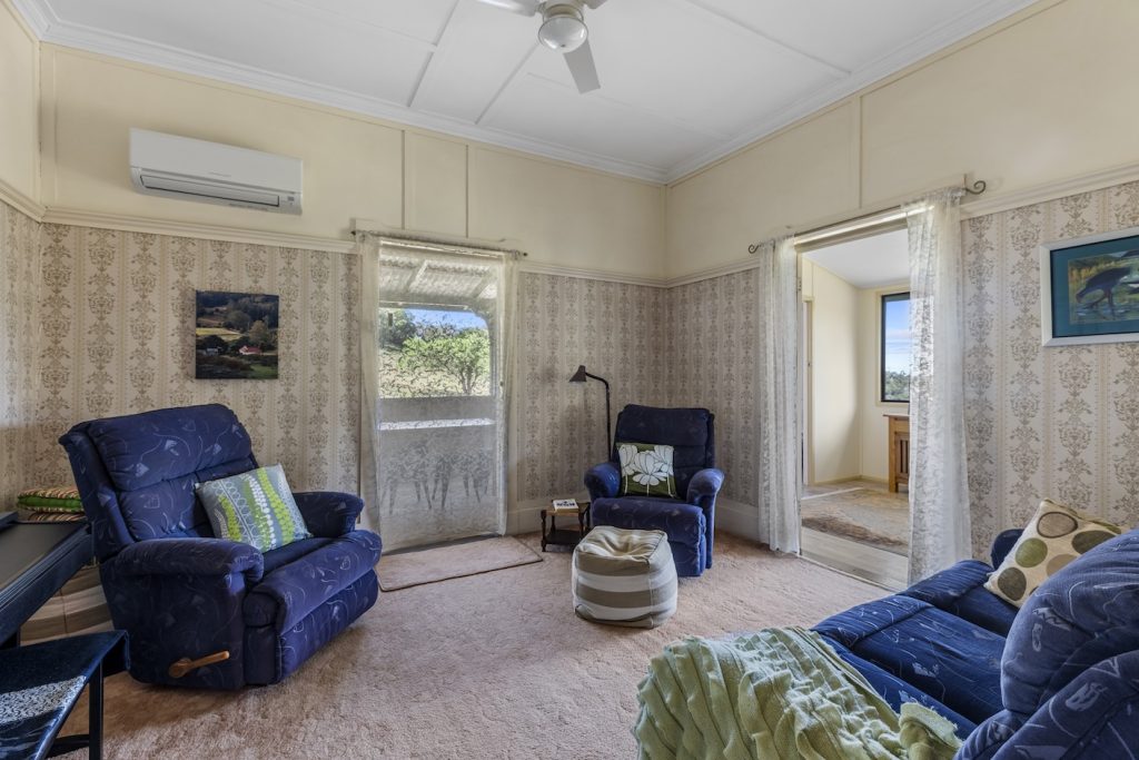 The home itself offers five bedrooms, one bathroom, a large kitchen and dining, and three separate living spaces. The layout is versatile and highly adaptable, allowing you to repurpose rooms to suit your lifestyle. Air conditioning and ceiling fans provide year-round comfort, while the covered veranda offers a welcoming place to enjoy the outdoors as part of daily living. Underneath, a carport accommodates four vehicles, and a nearby gazebo adds another space to take in the surrounds.
