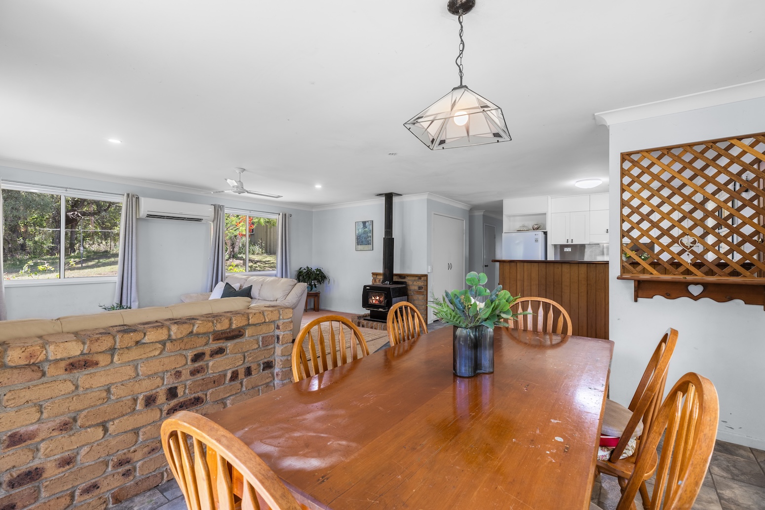 Welcome to 43 James Street Cooran, a rare offering that blends warm country comfort with the freedom and beauty of your very own private nature retreat. The home is inviting with natural light filling the open plan living and dining area which flows into to a spacious kitchen. A cosy fireplace anchors the space for winter evenings while air conditioning provides year round comfort.