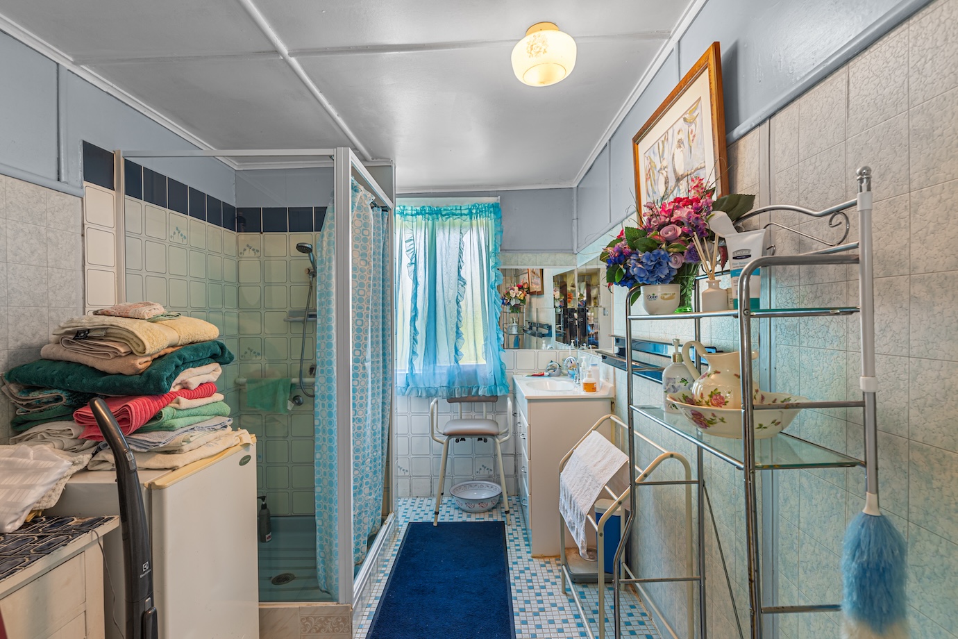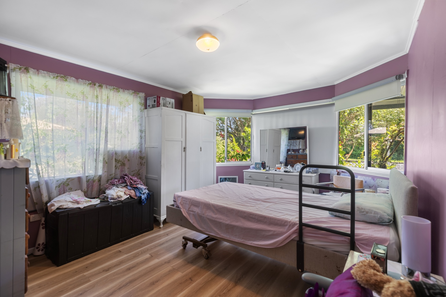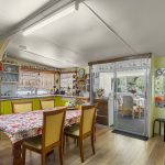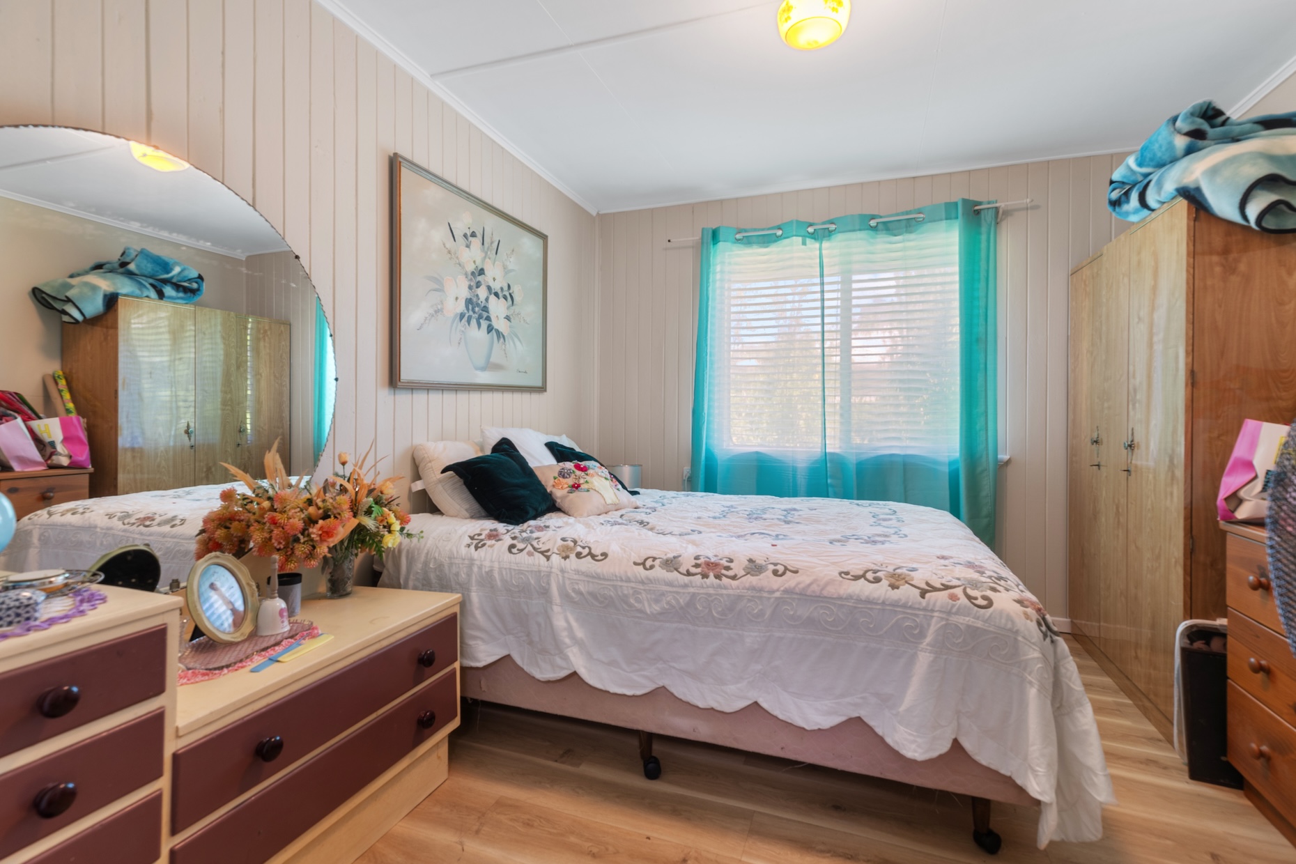 A central living room creates space for both quiet retreat and family connection. A sunroom adjoins the dining area and welcomes natural light, offering a gentle place for morning coffee or an afternoon read. The kitchen is generous in size and thoughtfully positioned to remain connected to daily life. A large internal laundry adds practicality, while VJ wall panelling brings texture and a subtle reminder of the home’s history.