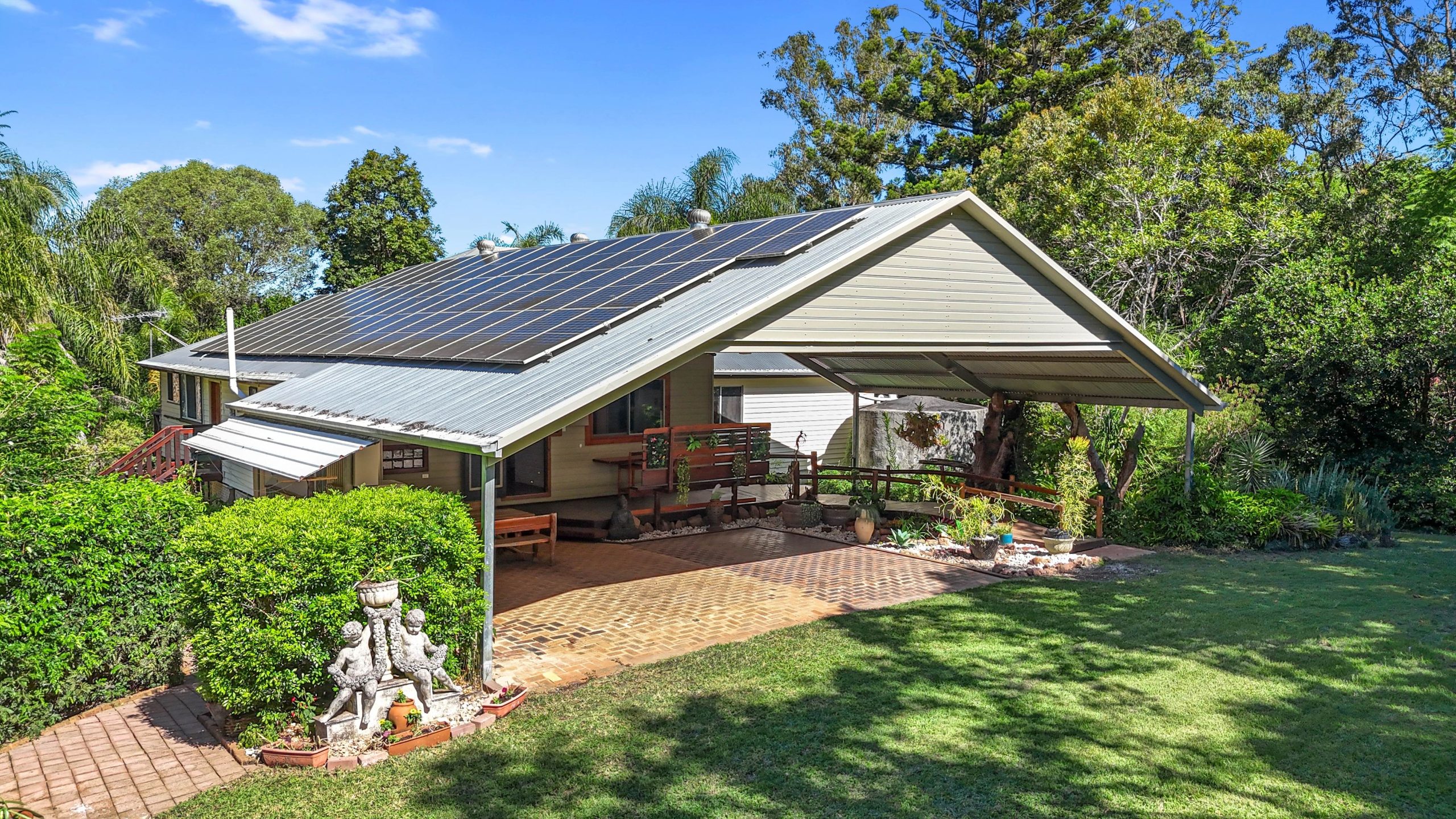 - Landscaped gardens feature year-round flowering species, plentiful bromeliads accompanying undergrowth of ferns with stunning Jacaranda trees around the property