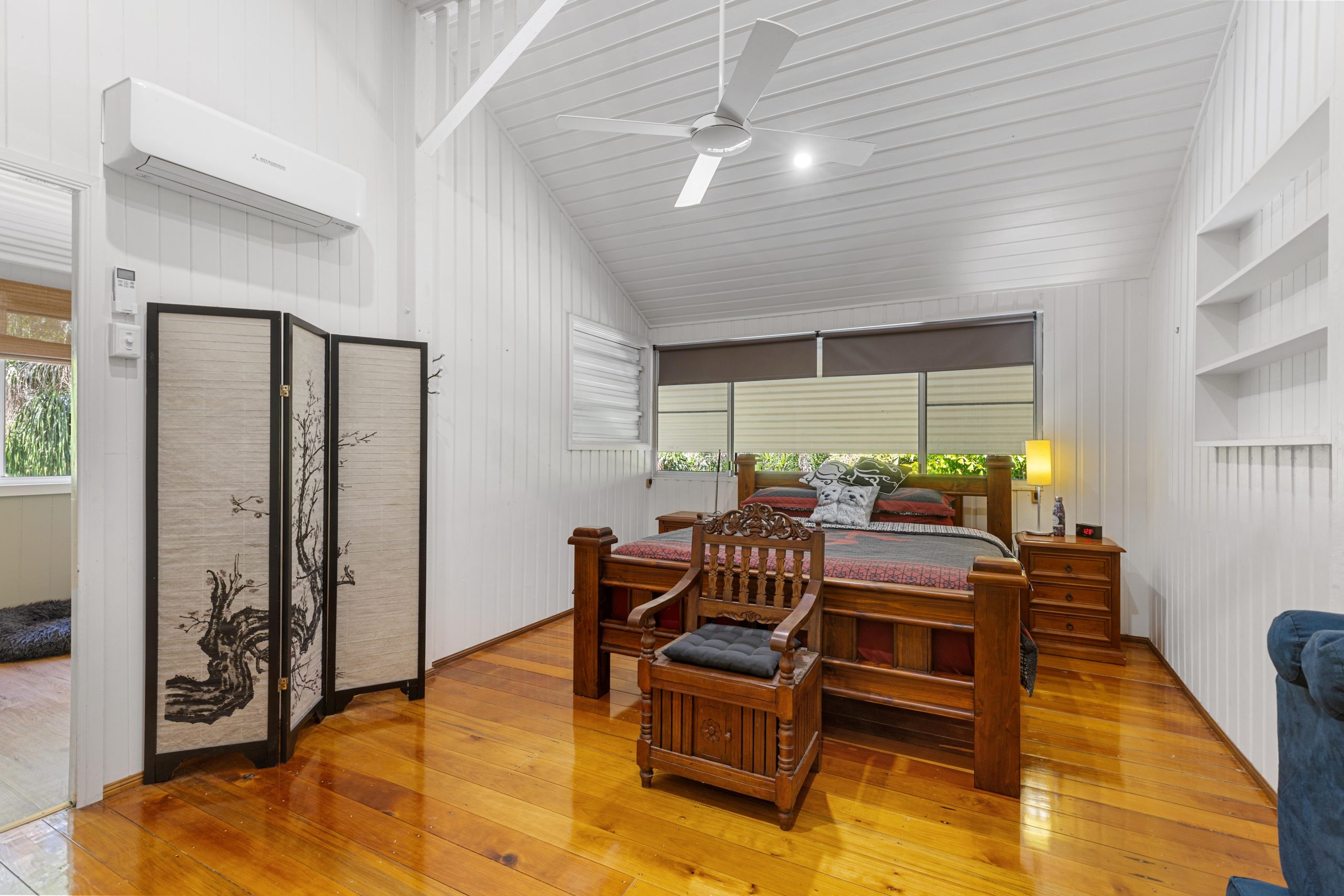 - Traditional Queenslander features include high ceilings, VJ board walls and original timber floors throughout the home