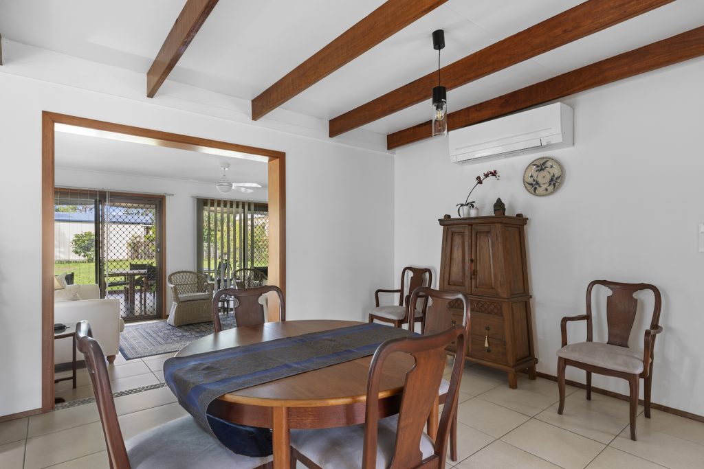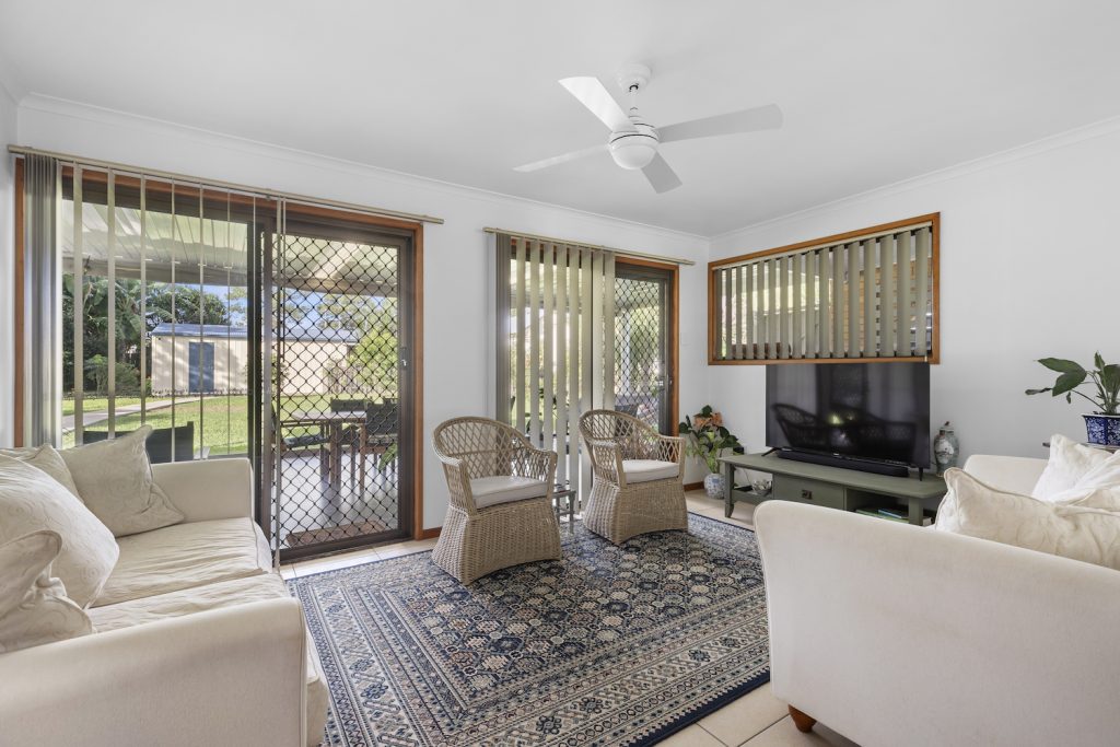 The gardens are thoughtfully landscaped and include established fruit trees such as bananas, avocados, pawpaw and passionfruit. Additional features include a small water tank for garden use, a near-new hot water system, upgraded metre box, and air conditioning for year-round comfort. A double garage with carport provides covered parking and practical storage.